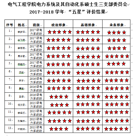 中共 五楼自拍 电力系统及其自动化系硕士生三支部委员会2017-2018学年 “五星”评价结果
