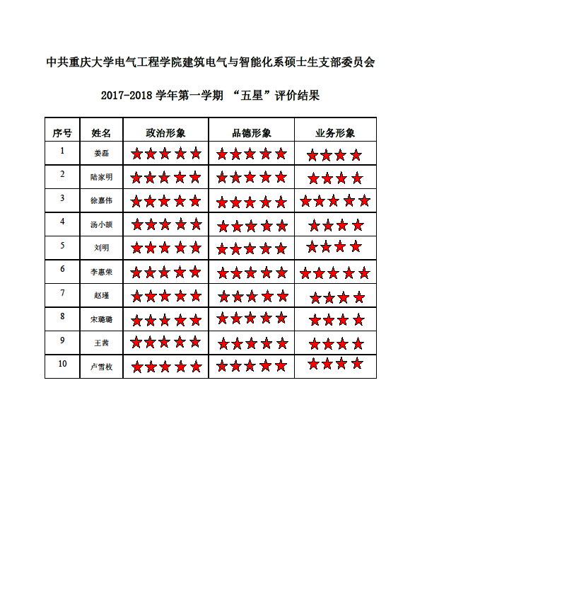中共 五楼自拍 电机与电器系硕士生支部委员会2017-2018学年第一学期 “五星”评价结果