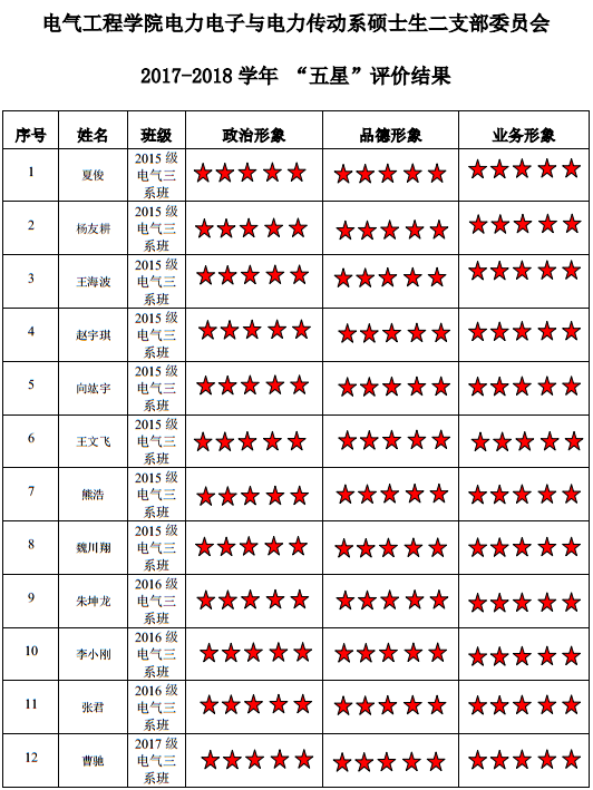 中共 五楼自拍 电力电子与电气传动硕士生二支部委员会2017-2018学年 “五星”评价结果