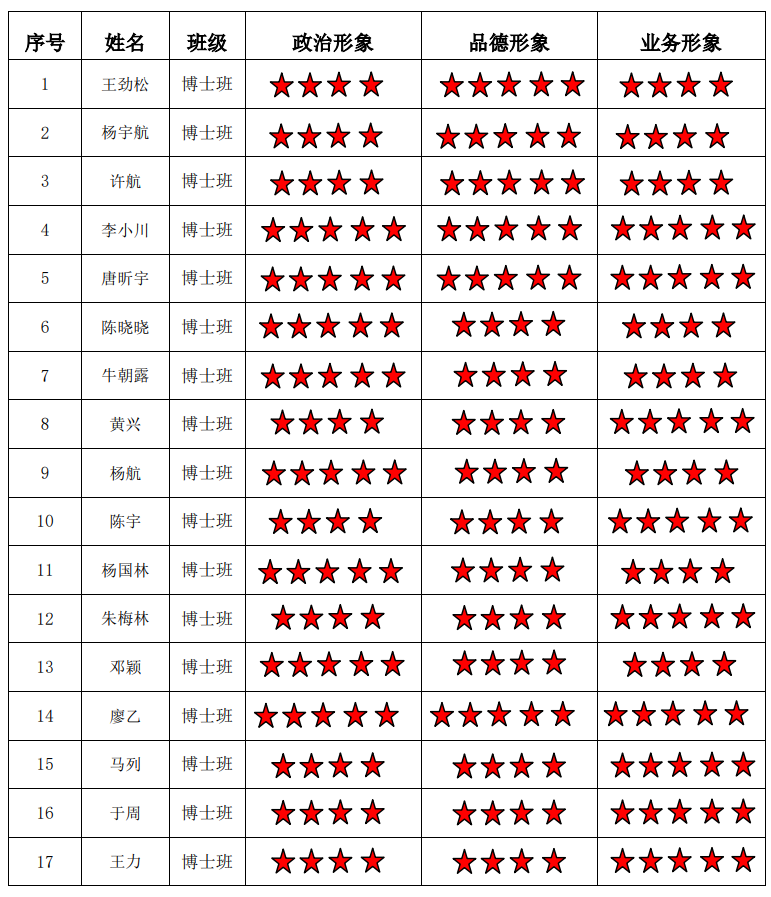 五楼自拍 博士生二支部 2022-2023学年第二学期“五星”评价结果
