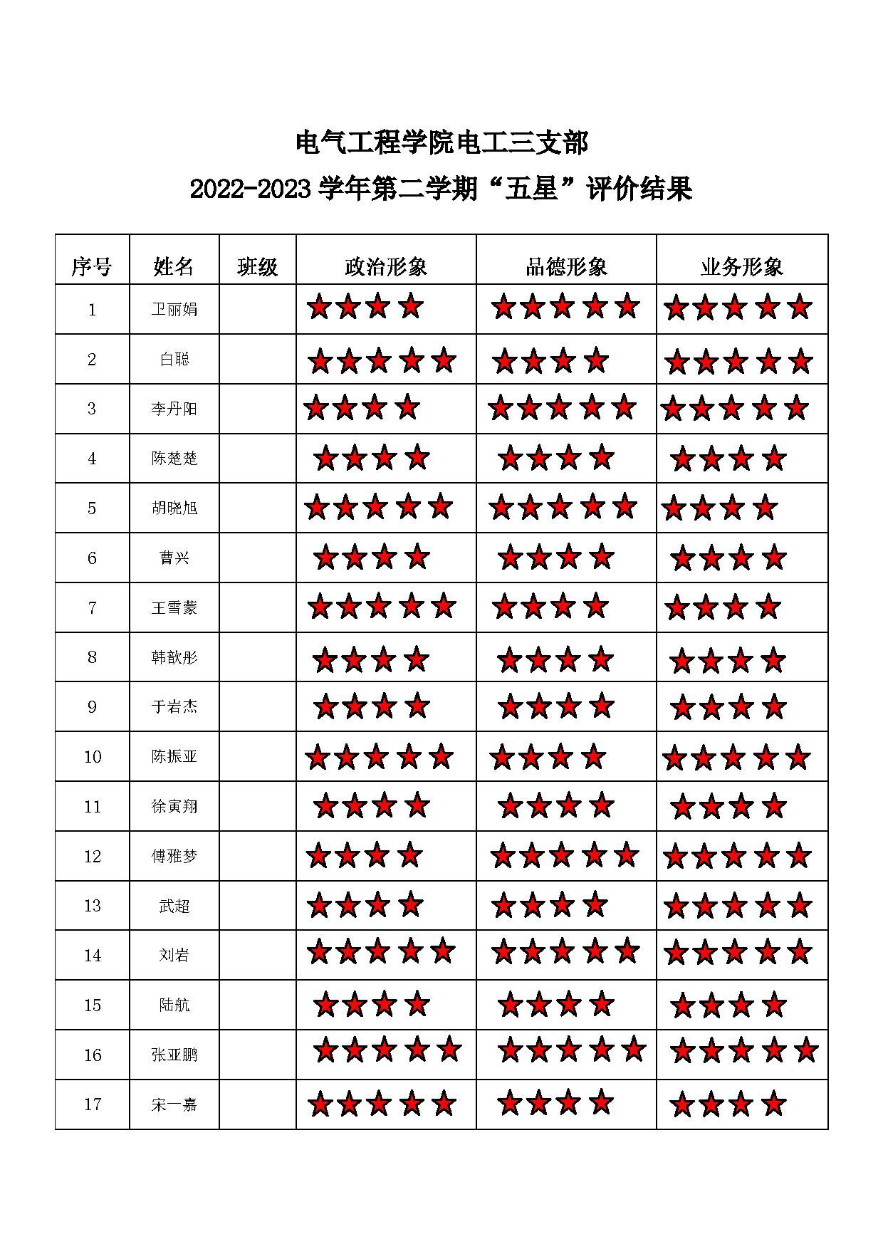 五楼自拍 电工二支部 2022-2023学年第二学期“五星”评价结果
