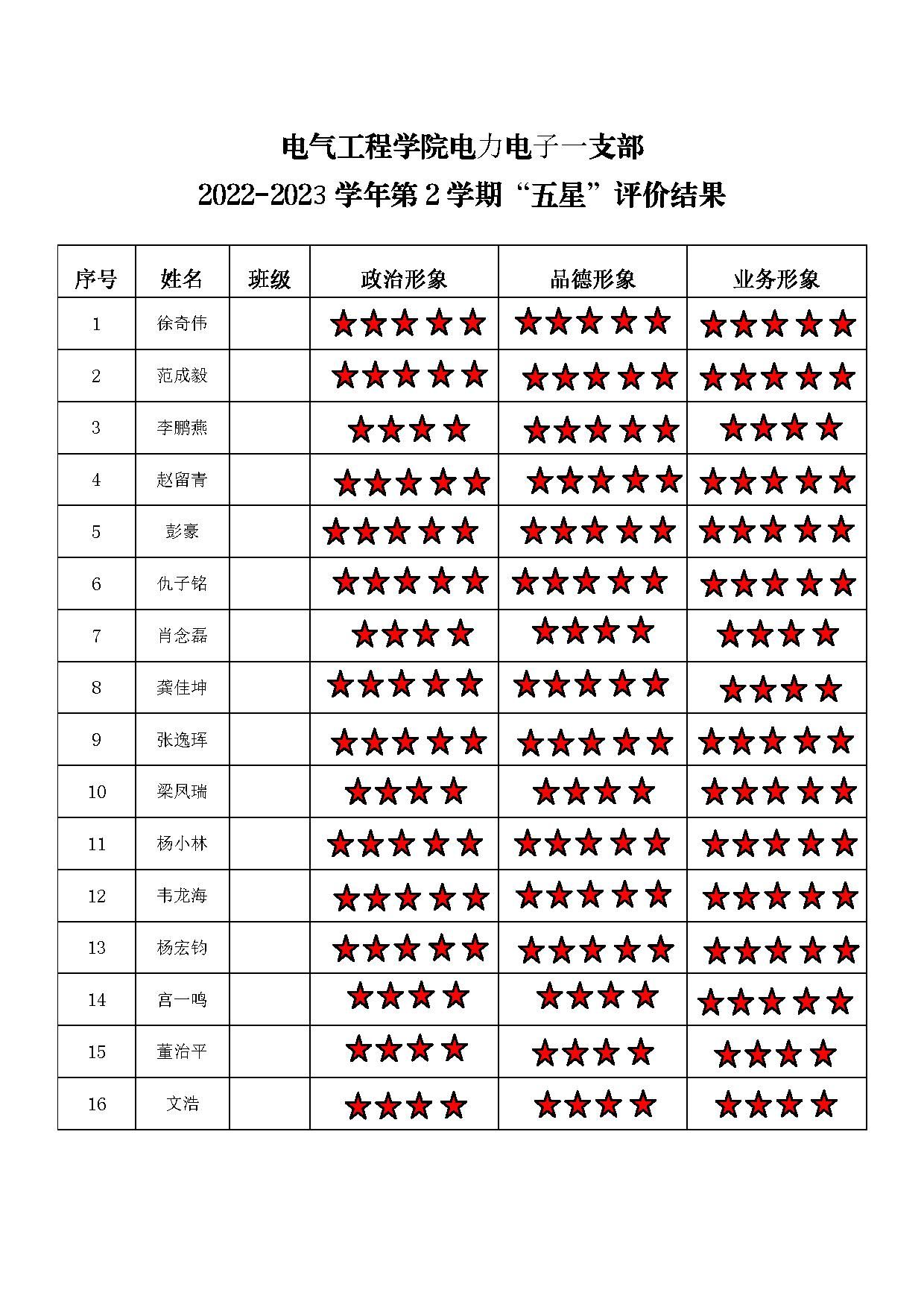 五楼自拍 电力电子二支部 2022-2023学年第二学期“五星”评价结果