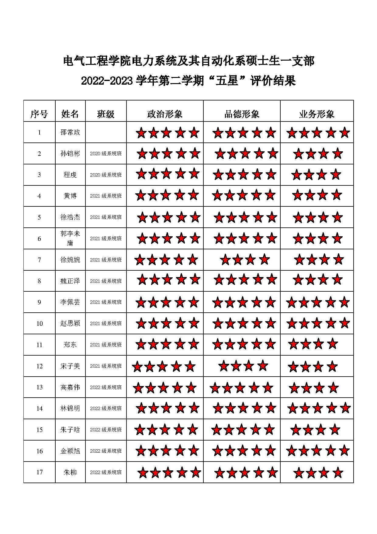 五楼自拍 系统二支部 2022-2023学年第二学期“五星”评价结果