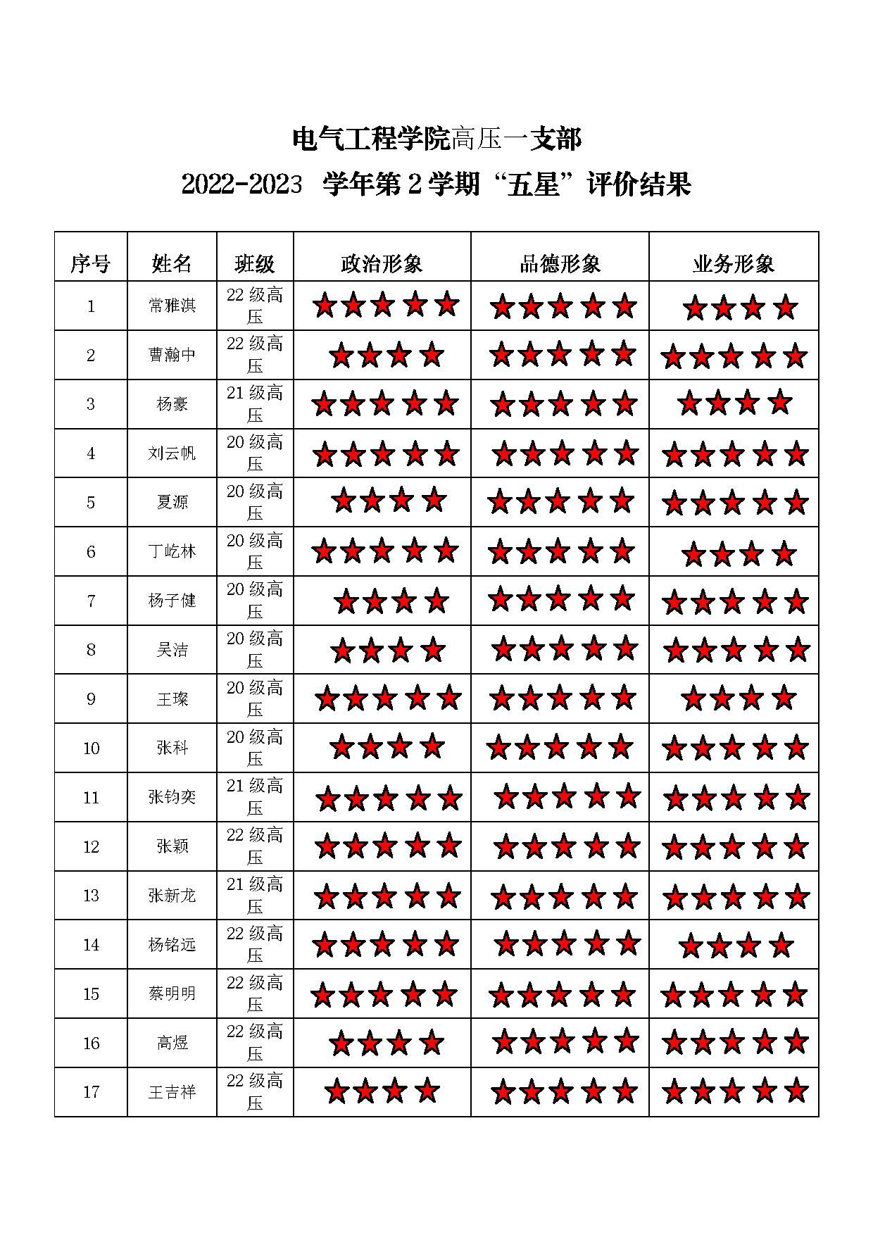五楼自拍 高压一支部 2022-2023学年第二学期“五星”评价结果