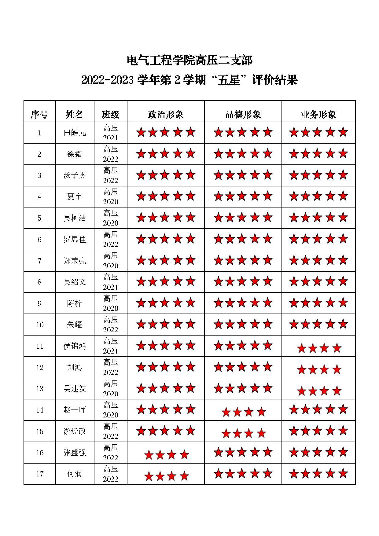 五楼自拍 高压二支部 2022-2023学年第二学期“五星”评价结果