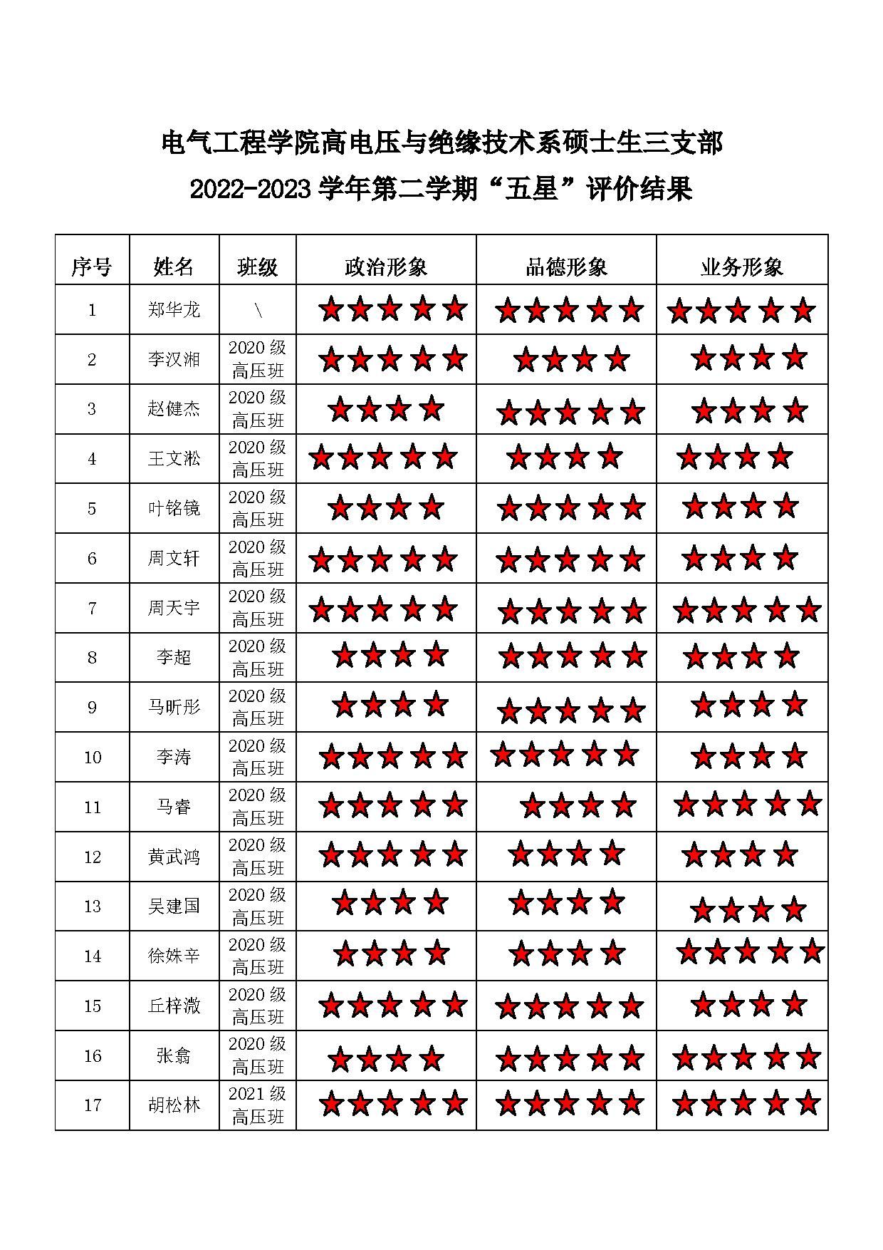 五楼自拍 高压三支部 2022-2023学年第二学期“五星”评价结果
