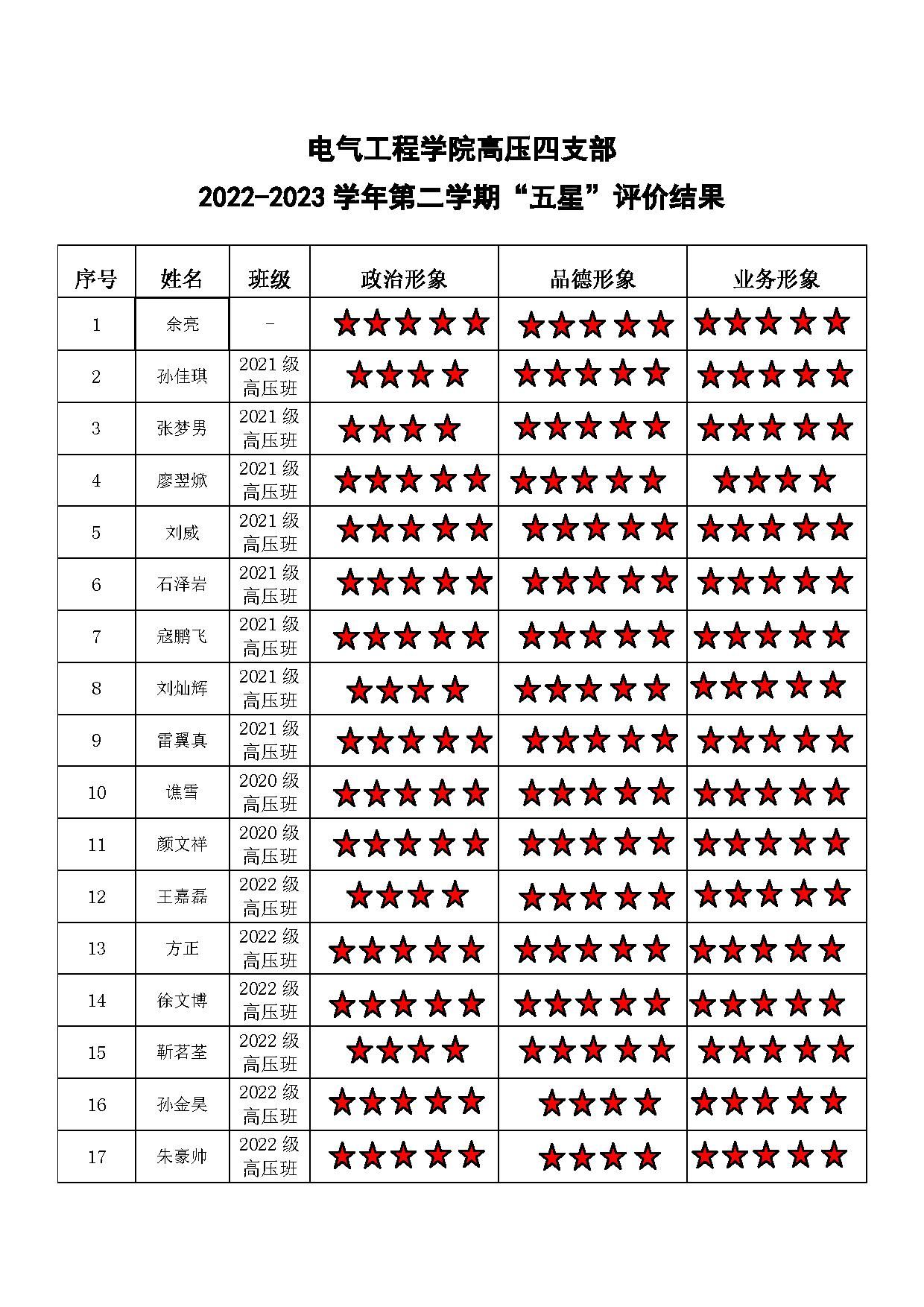 五楼自拍 高压四支部 2022-2023学年第二学期“五星”评价结果