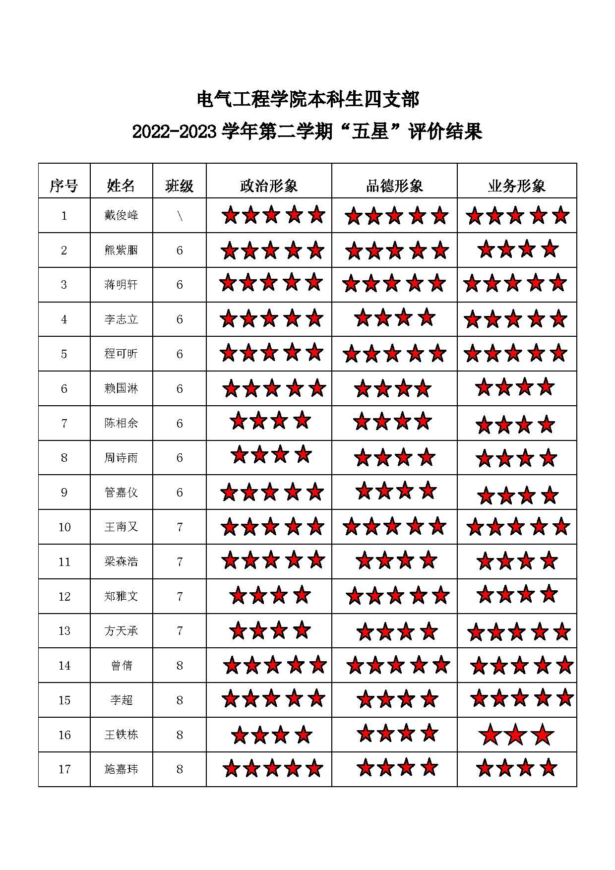 五楼自拍 本科生四支部 2022-2023学年第二学期“五星”评价结果