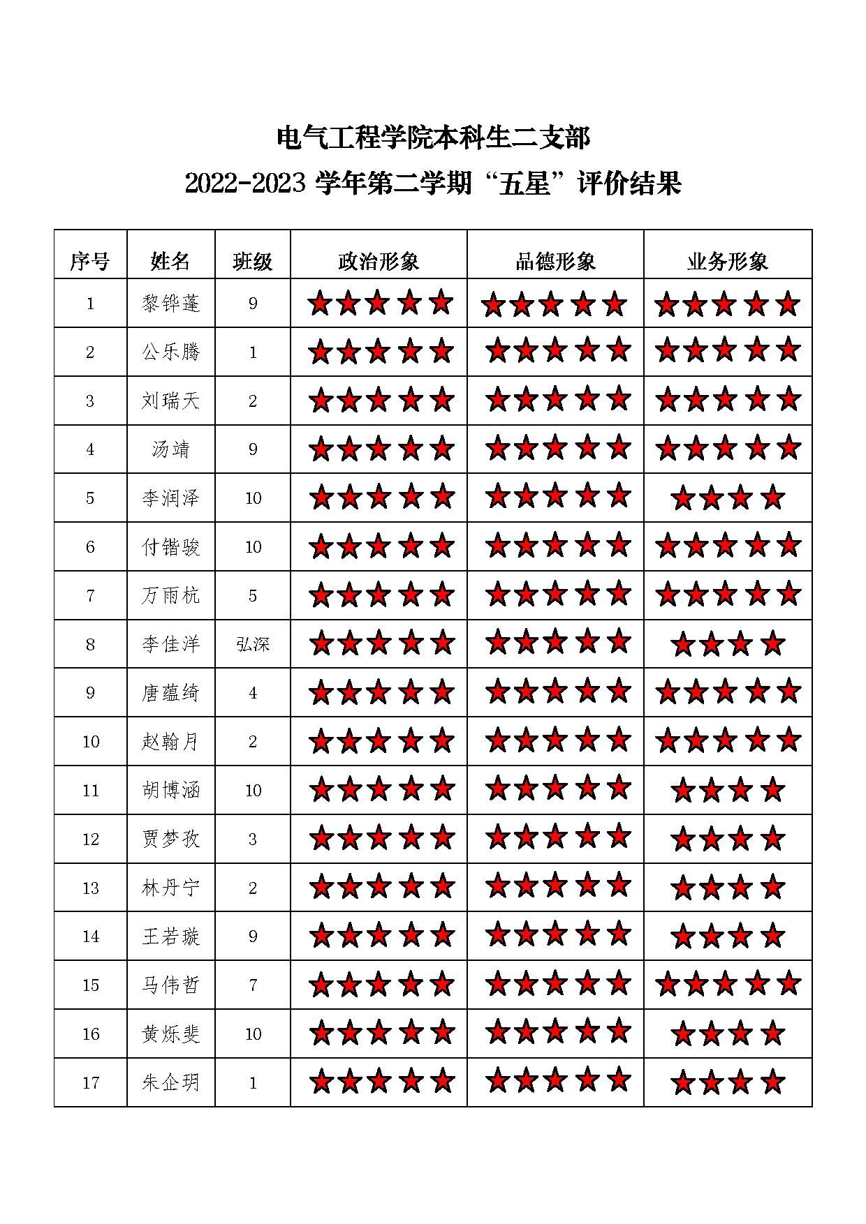 五楼自拍 本科生二支部 2022-2023学年第二学期“五星”评价结果