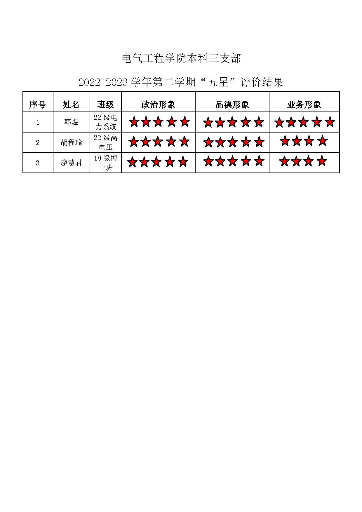 五楼自拍 本科生三支部 2022-2023学年第二学期“五星”评价结果