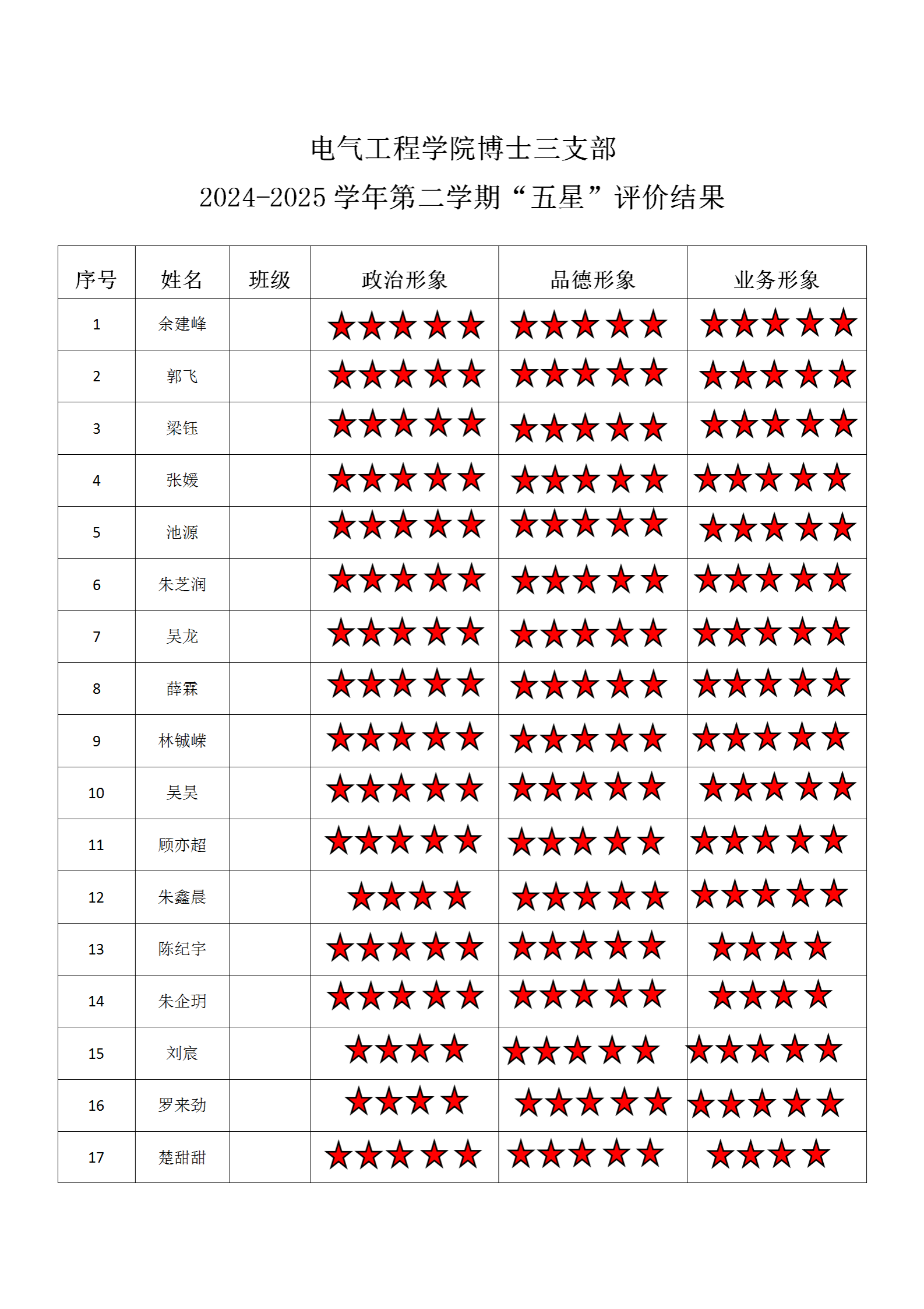 五楼自拍 博士三支部 2024-2025学年第二学期“五星”评价结果