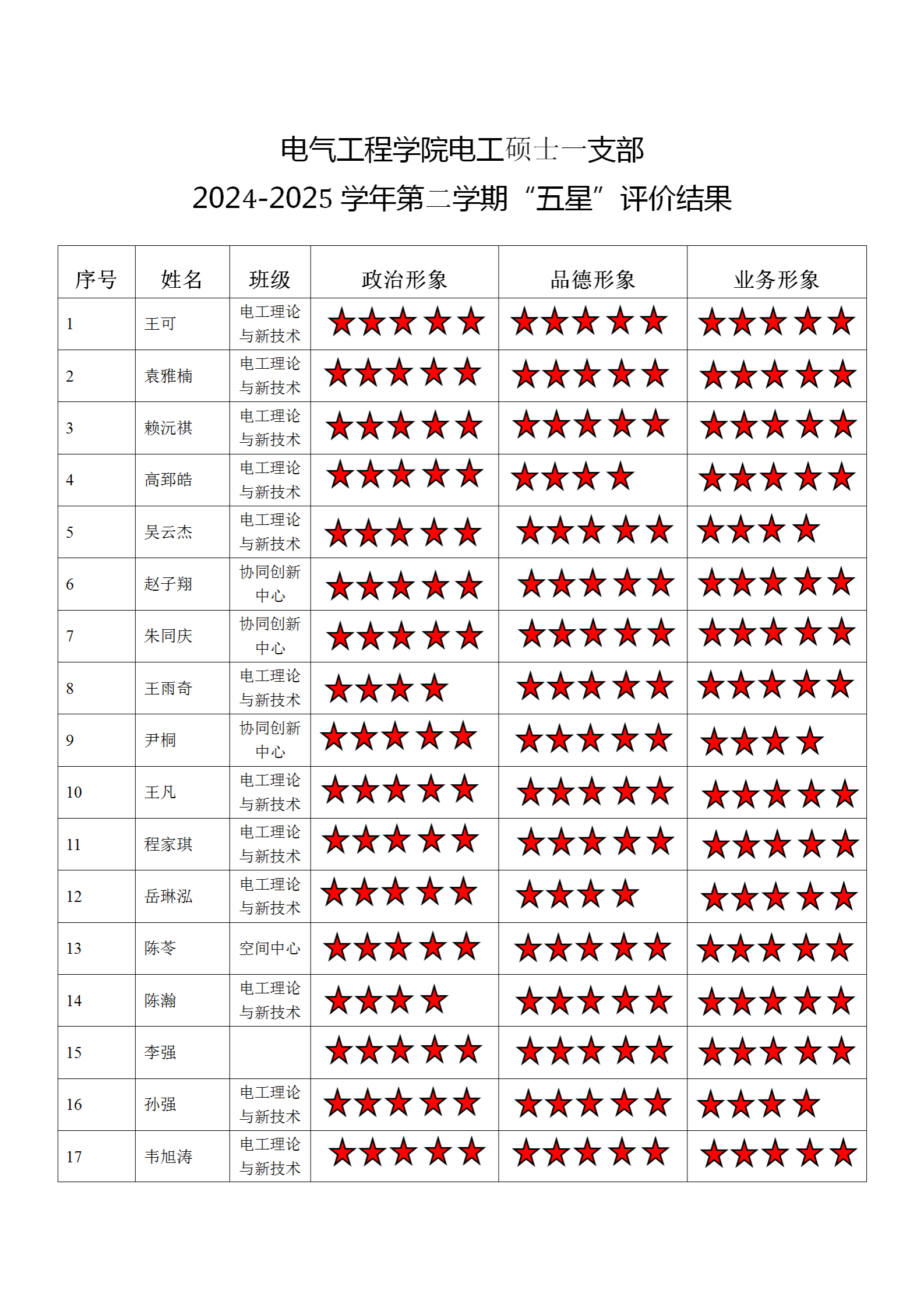 五楼自拍 电工一支部 2024-2025学年二学期“五星”评价结果