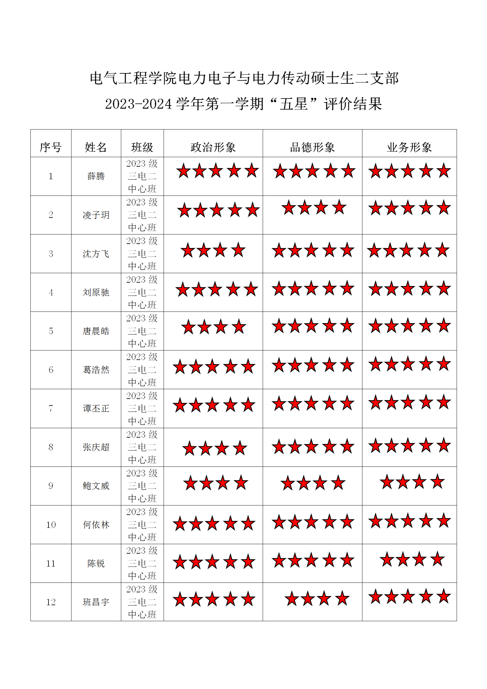 五楼自拍 电力电子二支部 2024-2025学年第二学期“五星”评价结果