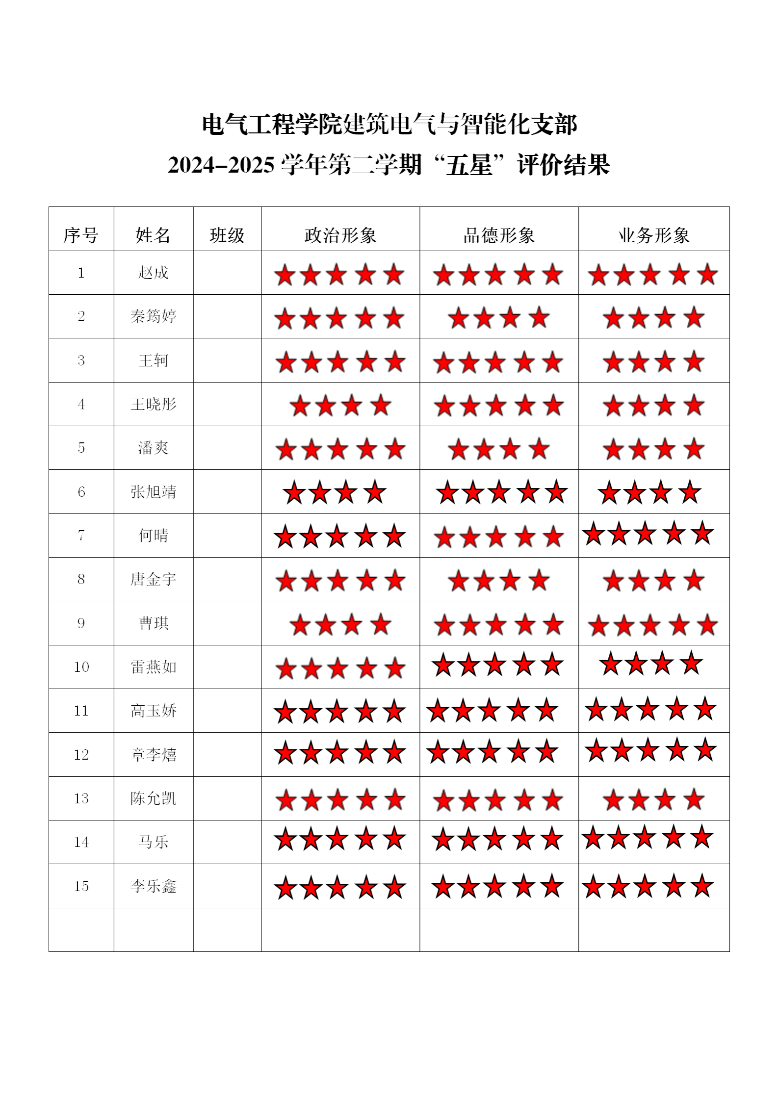 五楼自拍 建电支部 2024-2025学年第二学期“五星”评价结果
