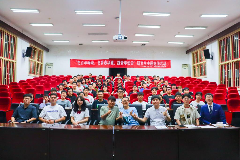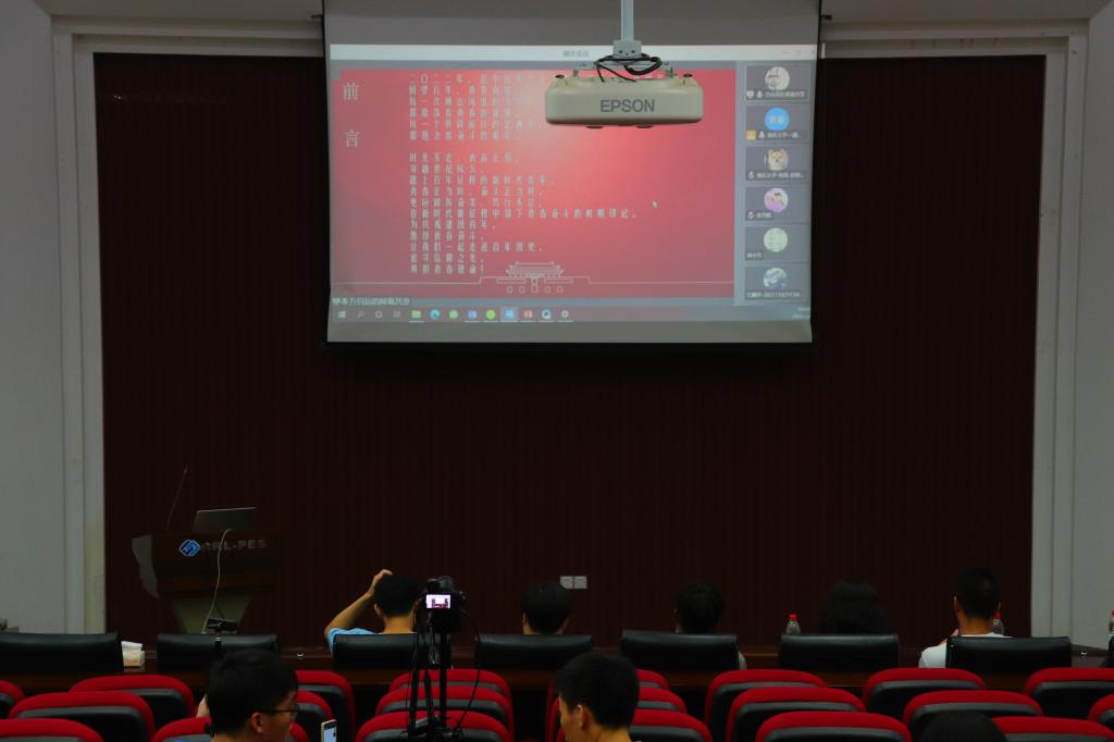 于6117会议厅组织开展“忆百年峥嵘·书青春华章·践青年使命”党团活动,本次活动采取线上直播、线下讲座两种形式。线下讲座由电工理论与新技术硕士生一支部学生副书记桑添翼主持,机械与运载工程学院研分团委书记杨朝富、马克思主义学院研分团委学术部部长张馨月、 五楼自拍