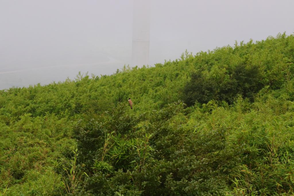 “山谷一阵风,竹海三层浪”。 由于观景台所在之处山势较高、风力强劲,四周布满随风翻滚的竹林,如同汹涌澎湃的海浪,发出强烈的撞击声,不由得想起“千磨万击还坚劲,任尔东西南北风”描写竹子的诗句。