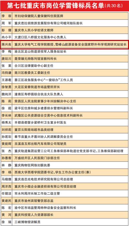 蒋兴良教授荣获第七批重庆市岗位学雷锋标兵称号。
