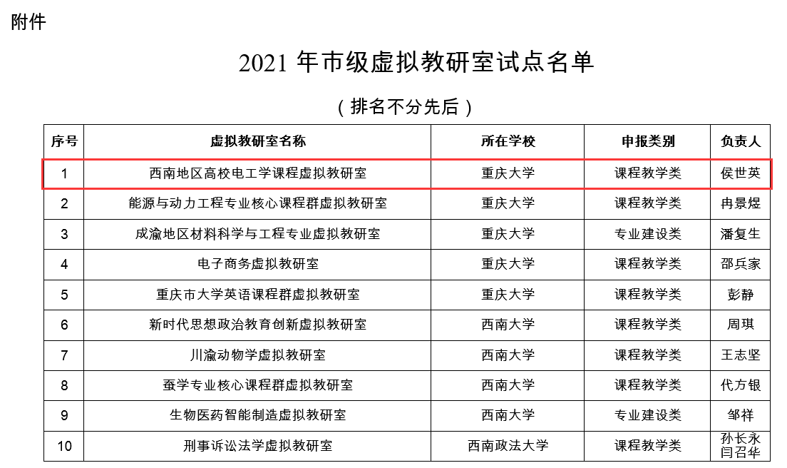 侯世英教授牵头申请的“西南地区高校电工学课程虚拟教研室”项目获批立项。