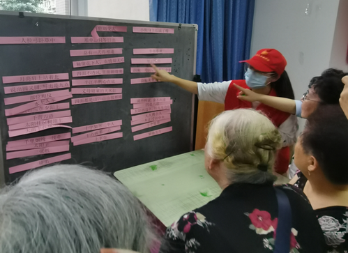 百分即可获胜。猜字谜活动最为持久,完成其他两个项目的爷爷奶奶渐渐聚集在桌前,群策群力,拿下一个个谜题。