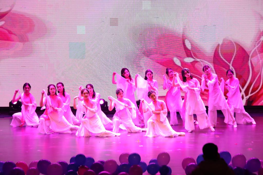 师生们的精神风采。《歌曲串烧》首首经典,演绎深入人心;婉转凄美的手风琴独奏将《山楂树》的故事娓娓道来;伴随着轻盈的音乐,柔和的灯光,曼妙而轻盈的交谊舞《彩龙舞东方》将联欢会的气氛推向了高潮。