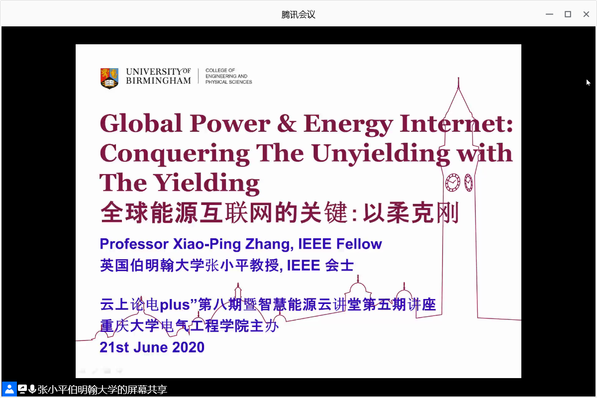通过腾讯会议线上网络平台,举办了六校联合“云上论电PLUS”系列学术讲座第八期暨智慧能源云讲堂第五期活动。本期活动特邀伯明翰大学教授、IEEE Fellow、IET Fellow、中国电机工程学会英国分会理事长张小平教授作为分享嘉宾, 五楼自拍