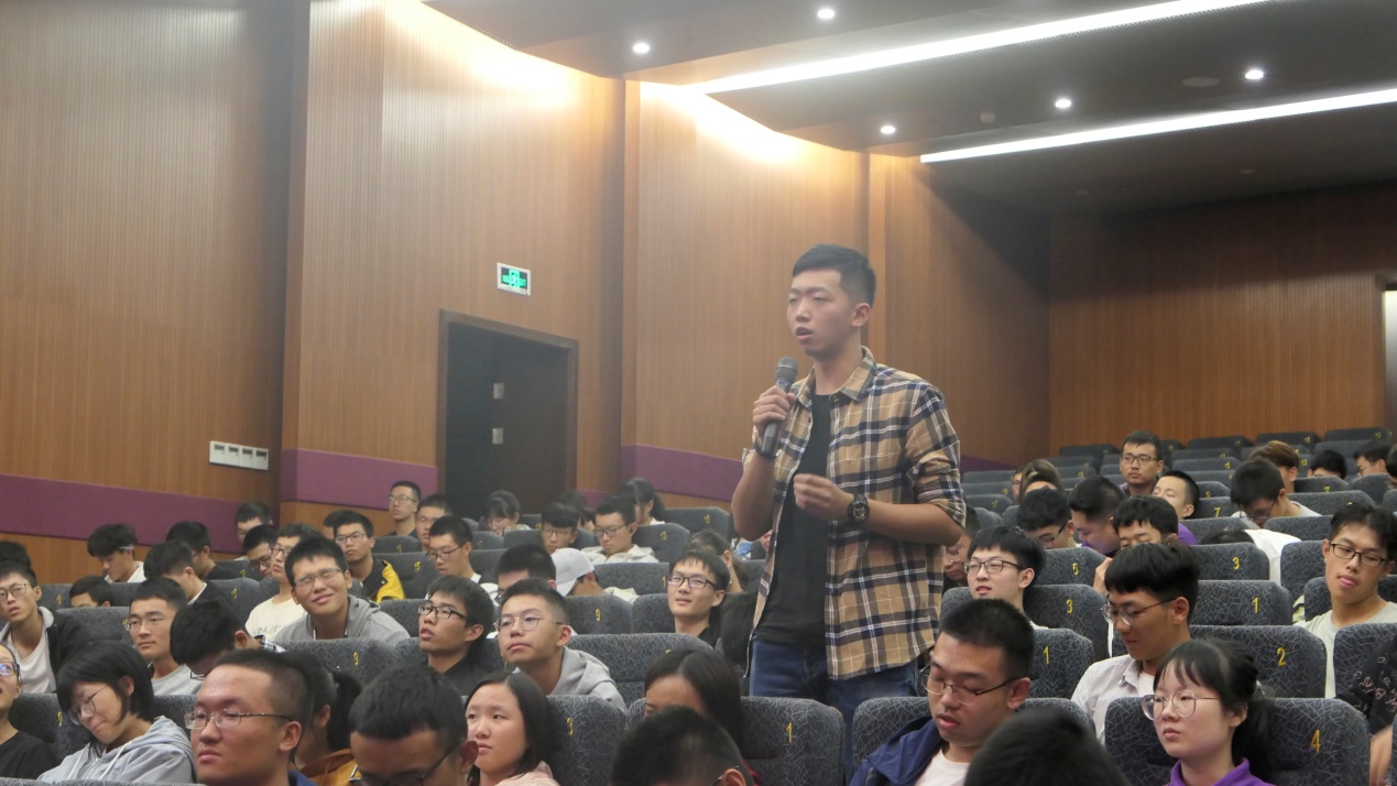 紧接着是学生自由提问环节,同学们积极提问。有同学提出了电气人应该有什么样的品质的问题。“扎根一线,把该做的事情都做好。”这就是杨沛东校友认为一个优秀电气人应该拥有的重要品质之一。有同学请教了校友们对学习生活的平衡,校友们都觉得学习只是大学生活的最主要的部分,但同时也要发展其他方面,提高自己各方面的能力。他们鼓励同学们走出国外进行深造,了解世界,开阔视野,这会对自己的人生有更多的启发。现场气氛十分热烈。