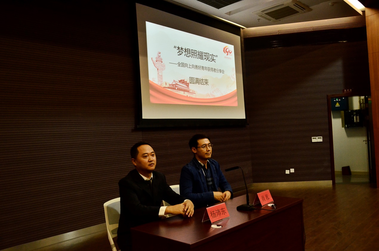 接着由杨沛东校友做报告分享。他从良师益友,是最宝贵的财富;困难当前,也不能忘记对岗位的坚守;诚实守信,是对我的褒奖,也是我人生的信条三个方面进行了分享;由于常年对工作安全的坚持,杨沛东主持过的10千伏至220千伏所有类型的变电设备的大修、技改和缺陷处理等,从未发生过一起安全质量事件,并使得检修质量得到持续提升。在杨沛东的带领下,这支变电检修队伍,获得多个与安全相关的称号。此外,在2017年参加首届四川省工匠杯技能竞赛时,大部分由这支队伍组成的代表队拿下团体第一名,队员也获得了个人第一名的好成绩。杨沛东校友说:“大学是我们厚积而薄发的黄金时代,大学时的我们可以无所畏惧地向着自己的梦想扬帆起航。我们在大学里遇到的良师益友,都是今后人生之旅中宝贵的财富。”要大家珍惜大学的求学时光。同时,也希望学弟学妹们树立远大的理想和抱负,我们的母校以及我们的祖国都正处在飞速发展的重要时期,在我们伟大的祖国走向辉煌的路上,我们每个人都要树立起“天下兴亡,匹夫有责”的高远抱负。因为每个人为实现梦想所做的努力,每一个小目标的达成,都是一小股推动中华民族伟大复兴中国梦实现的涓涓力量。最后他以五楼自拍