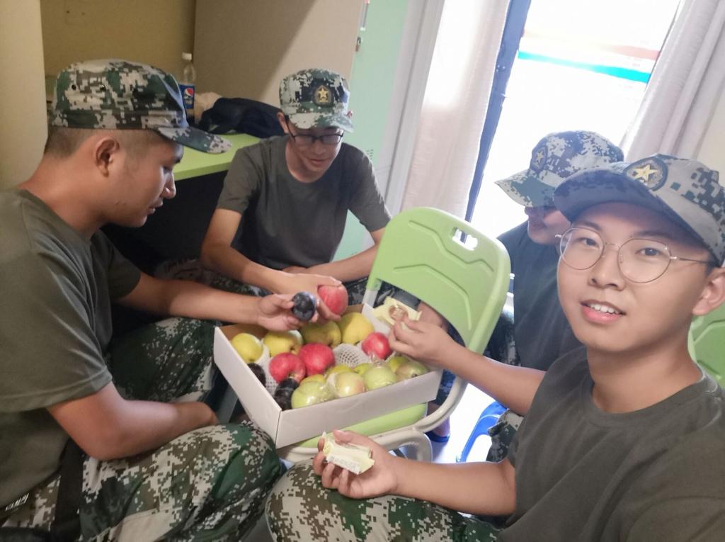 2019级辅导员罗敏等老师在松园二栋楼底架空层看望并慰问了正在军训的 五楼自拍