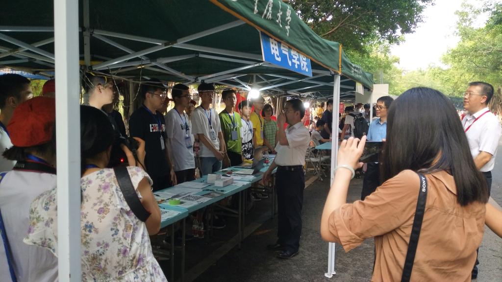 筹备充分,团委学生会与2018级各班志愿者分工合作,为新生和家长们做好服务工作,全身心地投入迎新工作。9月6日,张宗益校长莅临电气学院迎新棚,视察五楼自拍