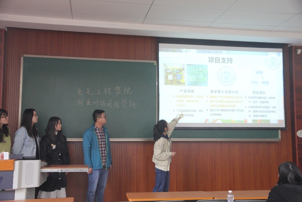 参与本次答辩的3个项目小组成员积极性较高,这3个小组分别是“基于云平台的电动汽车单板充电方案”、“探究在重庆乡村地区的‘互联网+农业’的春藤项目”以及“TMS320F28335型DSP实验套件”。活动开始前老师们先向各项目组成员积极参加国创项目表示支持与鼓励。在答辩过程中3个项目组负责人及其成员结合PPT汇报了项目的相关情况,同时评委老师们也对项目的实施和预期目标提出了自己的看法以及建议。
