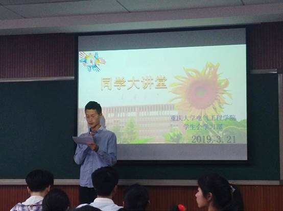 为促进同学们全面发展,展现电气学子的演讲风采,2019年3月21日下午2:30,电气团委学生会于虎溪校区D1329顺利举办了同学大讲堂演讲比赛活动。