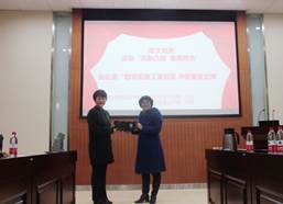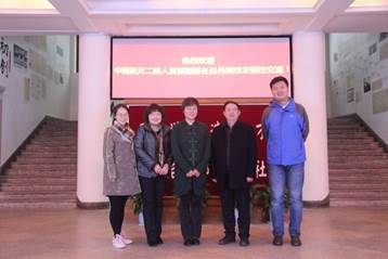 吕丹妮校友代表航天科工二院与张红春主任互赠纪念品。