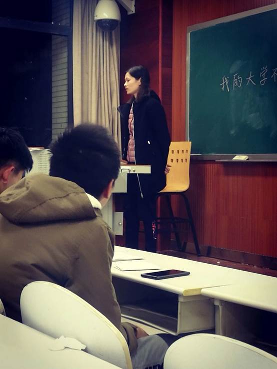 在主持人介绍完本次活动的目的后便是三位同学各自对于大学的展望,他们热情洋溢地介绍自己的大学计划;或平淡,或热烈,或丰富,生动形象地讲述着大学生活中,他们的种种意义非凡的经历;抑扬顿挫地赞叹着大学生活的丰富多彩和不同寻常。他们坚定的目标鼓舞了在场的团员。他们振聋发聩的语言振奋团员们的内心,他们慷慨激昂的语调令团员们感受到大学生涯无限的可能性。