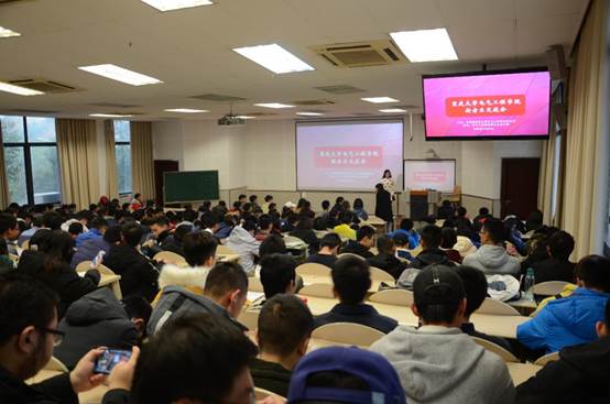 2018-2019学年新老生交流会在D1237顺利召开。电气学院团委书记、2018级辅导员喻惠老师和辅导员助理董轶男学姐出席本次交流会,并邀请到了2015级优秀学长学姐谢元浩、刘海平、牛凯春、巫宇峰以及姚鹏志为新生们进行经验分享。本次会议由学习部王昊悦主持。