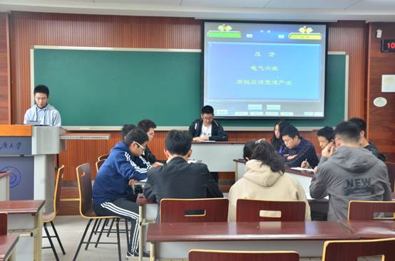 在短暂的休息讨论之后,紧接着的便是本次辩论赛的高潮部分,双方辩手进行自由辩论,交替发言。在自由辩论中,比赛逐渐进入白热化状态,双方据理力争,矛盾冲突点在不断地产生也在不断地转移,在“资源的合理利用分配”上正方赢得一筹,但在“高校生因制度放宽而产生惰性”上又为反方扳回一局。八位辩手交替发言,针锋相对,在不断的质疑中发现对方的缺点并不断巩固己方观点。最后由双方四辩进行总结陈词,双方四辩不仅指出了对方问题并对己方观点进行了详细的解析,并用权威的数据给予了支持。在双方四辩精彩总结后,观众席上掌声雷动,经过评委们的判定,正方电气4班和电气3班获胜,至此,本次辩论赛完美谢幕。最终电气3班和4班进入决赛,并且于11月10日19时,在D1125举行决赛,期待下周六辩手们的精彩表现。