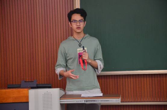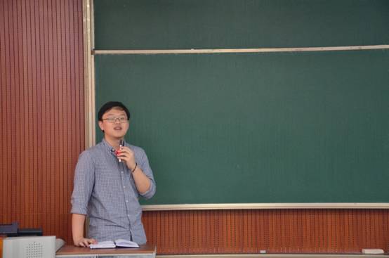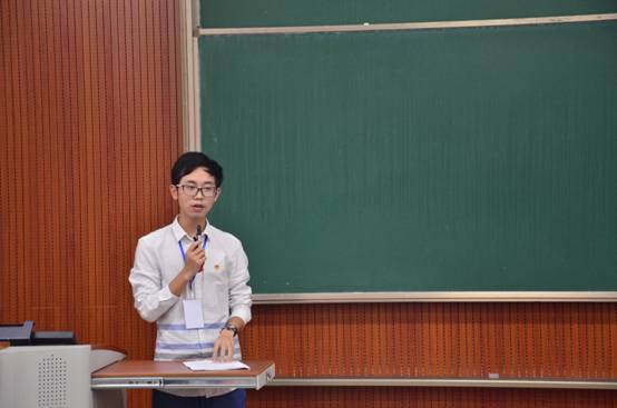 随后,上一届青协主席、2014级学长汪铁霖上台与同学们分享自己大学的故事。他以“不忘初心 奋力前行”作为标题,和同学们分享了自己从大一的好人,大二的迷茫,大三的收获到大四的思考的一段心路历程。他说学生干部的经历让自己收获很多,同时他和大家分享了 “后现实主义”和“后浪漫主义”两种思想,给同学们讲述了两种人生态度,他说自己是一直遵循本心,对于自己喜欢的东西会始终不忘初心地去追求。除此之外,汪铁霖还告诉同学们,学生工作的目的就是为了自我提升,从而跳出个人眼界的井底。他希望,在场的各位同学都能不断勉励自己,砥砺前行。