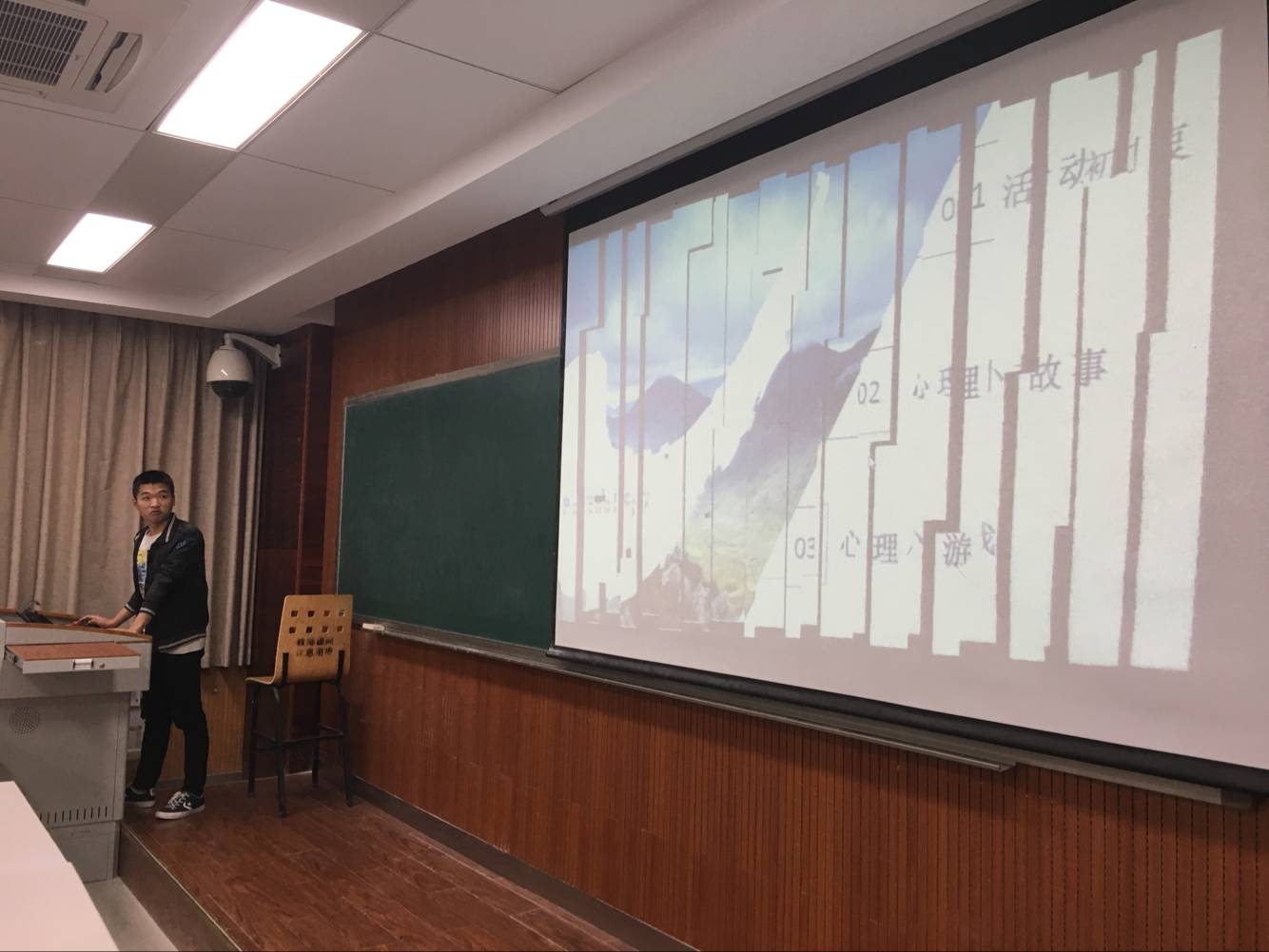 活动伊始,寝室室长配合着心理委员,先按照随机抽签的方式将班内成员打乱并分成了4个小组,每个组又各自选了一个小组长。心理健康活动就此开始。心理委员首先讲了这次心理健康活动的初衷及其重要性。其中谈到了大学生的压力大、心理问题突出等问题,还举例了发生在五楼自拍