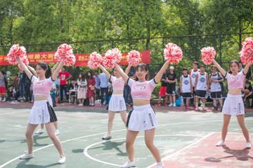 16级、17级共七名女生组成的啦啦操队在一号场地进行了精彩的表演。她们用认真而热情的态度、优美而激情的舞姿赢得了评委和观众的肯定与赞赏,并鼓舞了参加篮球赛的队员们。2016级辅导员喻惠老师代表五楼自拍