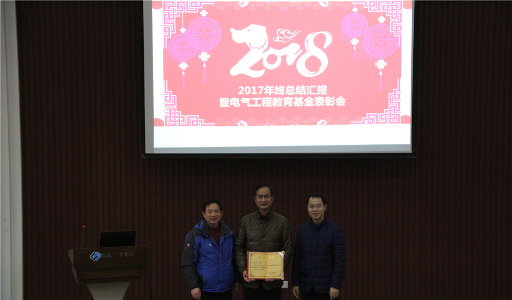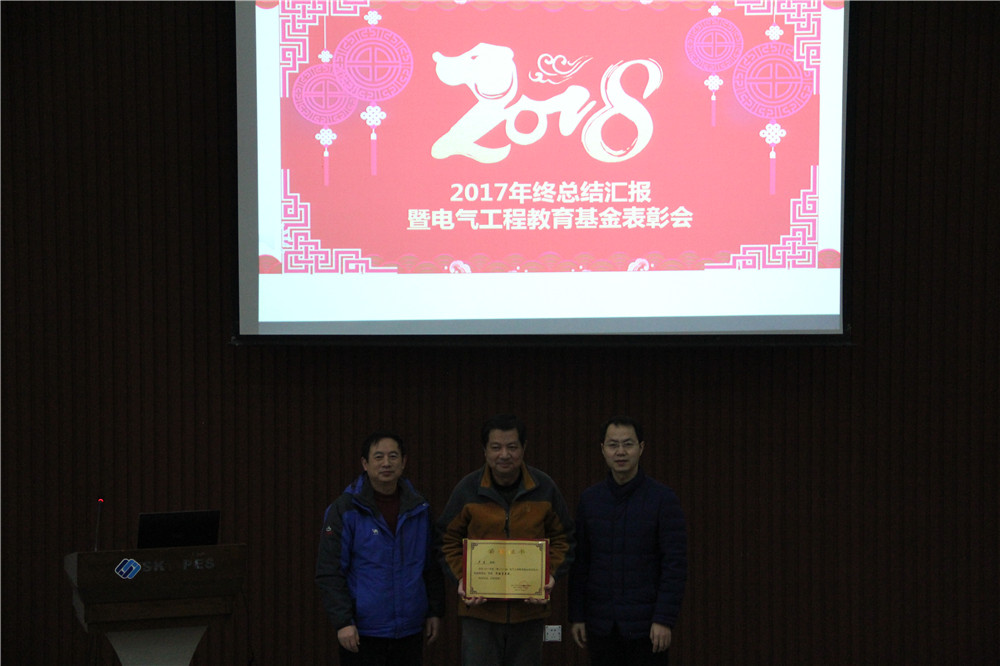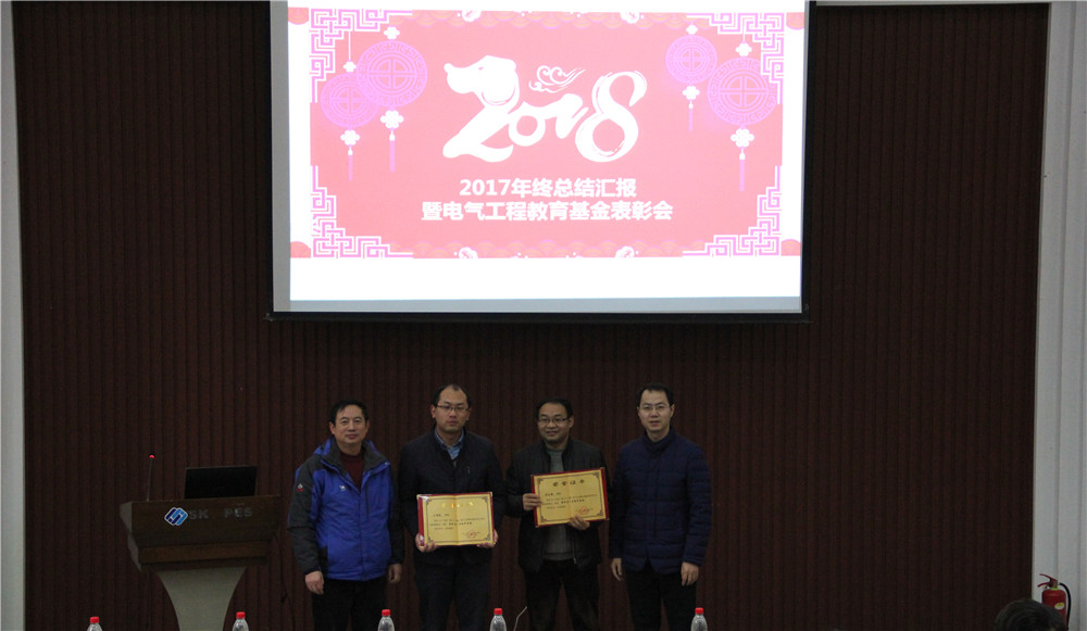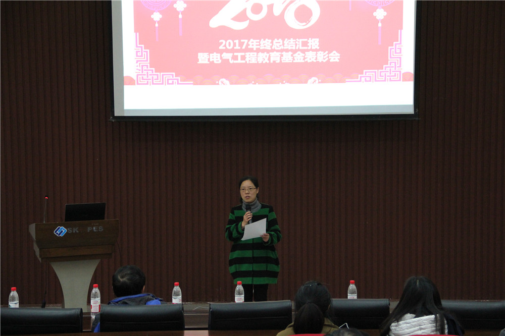 全体教职员工、离退休老师、部分学生代表齐聚六教117会议室,隆重举行2017年度工作总结暨电气工程教育基金表彰会,活动由学院党委副书记孟繁琦主持。