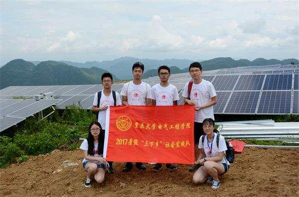 “三下乡”志愿团队到达重庆市黔江区麒麟镇阿蓬江光伏发电基地。 通过前期调查,志愿者们了解到,整个基地年均发电约为1亿度,产值1亿元左右,且基本实现零污染、零排放,使黔江区得到充足的电力资源和生态保障。黔江区的光伏扶贫项目是国家提出的精准扶贫试点工程之一,是从“输血”到“造血”的新尝试,是“粗放扶贫”到“精准扶贫”的新举措。