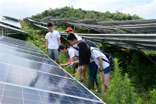 前往光伏发电基地的山路崎岖坎坷,但是丝毫挡不住同学们的热情。到达基地后,负责人带领实践团成员进行参观,他告诉志愿者们,光伏产业的发展在黔江地区有很大的优势:其一,发电基地地处山区,光照条件充足,而且利用太阳能发电,节能环保,过程中没有污染物的排放,就不会对周围的环境完成污染;其二,光伏发电基地产业可以解决当地居民的就业问题,光伏发电板间的除草除杂工作和基础设施建设均需要劳动力,当地文化程度较低的居民便可以通过投身于产业建设来改善生活状况;其三,政府对于光伏发电产业大力扶持,由于发电基地并网传输电能,在传输过程中存在电能损耗,政府对基地产出的每度电都有补贴。