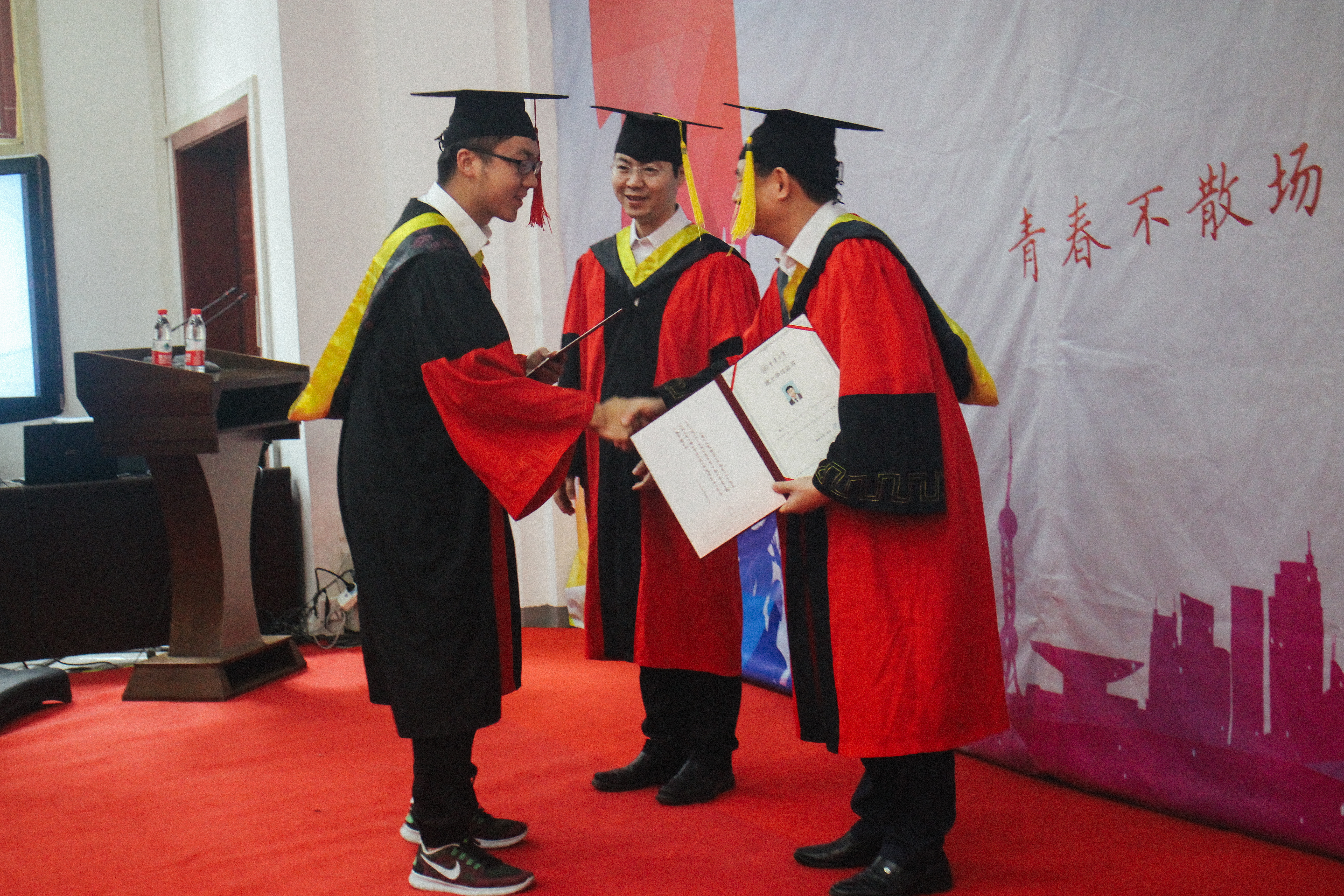 紧接着进行的是本科生的授位仪式,与博士生和硕士生相比,他们的脸上多了几分稚气,但眼神依旧坚定。授位仪式按班级顺序依次进行,主持人由各班民主推选产生,在每位同学上台接受授位时,主持人会对该同学进行介绍,每个班的主持人风格各异,有的幽默风趣,有的活泼大方,有的文艺清新......他们都将每位同学介绍的惟妙惟肖,充分展现出每位同学的特点和个性。同学们依次上台,郑重而喜悦地从李院长和周书记手中接过毕业证书和学位证书并与他们合影留念。有不少毕业生的父母和亲友也来到了现场,李院长和周书记对他们的到来表示热烈的欢迎,并邀请他们与毕业生们一起合影,一起见证生命中这一重要的时刻。