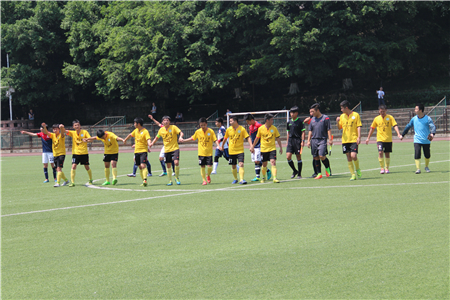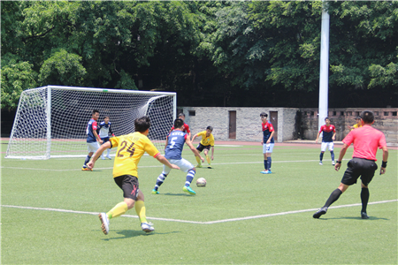 研究生足球联赛淘汰赛次轮在A区团结广场展开,比赛双方是电气学院和材料学院。根据分区,本轮电气、国际、材料三支队伍进行单循环比赛,前两名晋级四强。最终,电气学院凭借4号尹潇和9号王耀的进球以3:1战胜材料学院。
