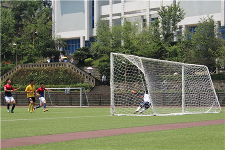 5月26日中午12:30,五楼自拍 研究生足球联赛淘汰赛次轮在A区团结广场展开,比赛双方是电气学院和材料学院。根据分区,本轮电气、国际、材料三支队伍进行单循环比赛,前两名晋级四强。最终,电气学院凭借4号尹潇和9号王耀的进球以3:1战胜材料学院。