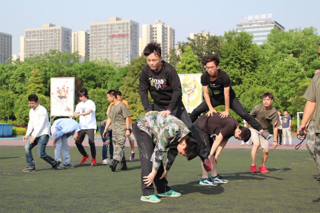 最后一个项目是跳马绑腿跑。合理的人选和运动员们的协调合作是该项目致胜的关键。该项目充分的培养了同学运动员们团结协作的精神。