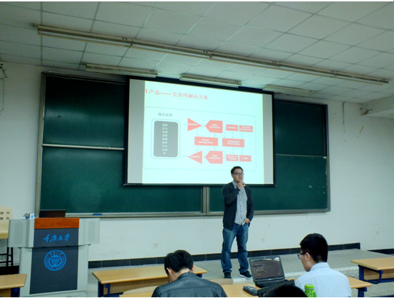 首先,蒋荣慰经理从TI公司的发展历史、业务范围、合作企业等方面向同学们详细介绍了TI公司,使同学们全面了解到TI公司雄厚的实力和科研力量。