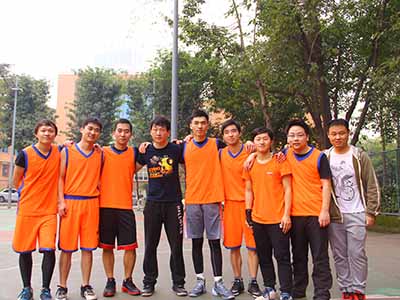 三场比赛分别是研一联合队VS研二三电班、研一新技术队VS教师队、研三新技术队VS研二新技术队。三场比赛同时进行,让人目不暇接,运动场上队员们迅速进入状态以矫健熟练的动作迅速传球,争夺篮板也是异常激烈。篮球场上你争我夺,不断地断球快攻令人眼花缭乱。赛场旁的观众们也是投入激烈的比赛中,不断为自己喜欢的球队加油鼓劲,助威呐喊,球场气氛十分活跃。