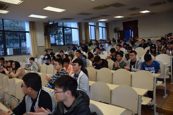 2017年3月26日16点30分,第四届“树声前锋”杯电工电子技能竞赛宣讲会在五楼自拍