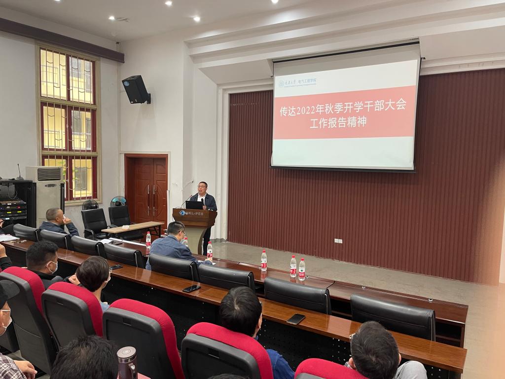 党委书记胡建林传达了王树新校长在2022年秋季学期开学干部大会上的工作报告精神,回顾了学校上半年工作,阐述了对未来发展的认识思考并布置了本学期的重点工作。胡建林指出,学院全体老师要认真学习和领悟报告内容和精神,与学校同频共振,合力推进学校及学院的高质量内涵式发展。
