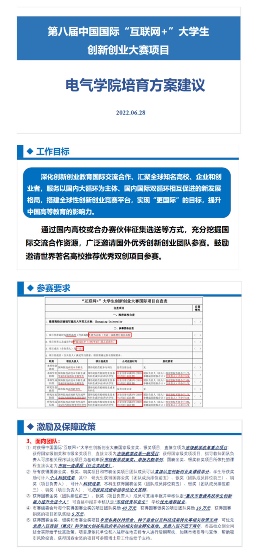本次指导会旨在介绍与明确第八届中国国际“互联网+”大学生创新创业大赛国际赛道竞争精神:深化创新创业教育国际交流合作、汇聚全球知名高校、企业和创业者,服务以国内大循环为主体、国内国际双循环相互促进的新发展格局,搭建全球性创新创业竞赛平台,实现“更国际”的目标,提升中国高等教育的影响力;激励 五楼自拍